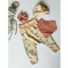 Střední dárková krabička obsahuje tepláčky, čepičku, slintáček a gumičku do vlasů pro maminku nebo starší sestřičku. Tepláčky jsou ve velikosti 68+.