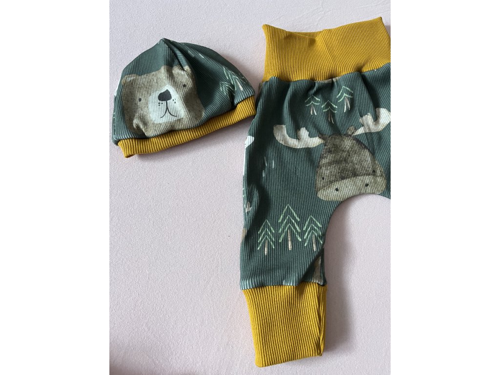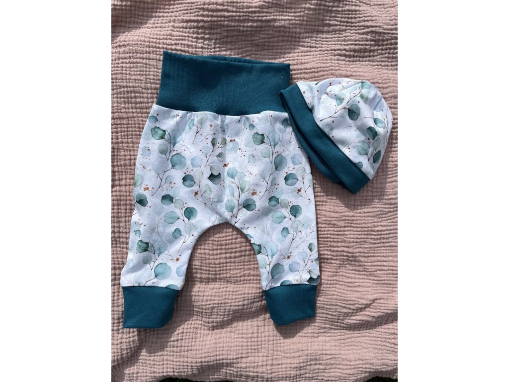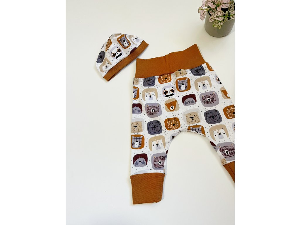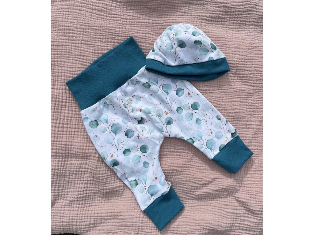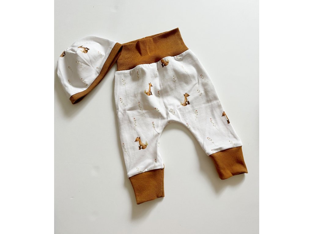 Rostoucí tepláčky a čepička/čelenka (velikost 62+, 68+)